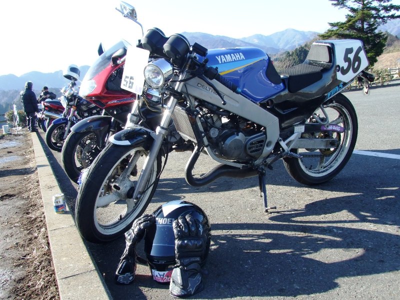 ツナギを着込んで、TZRで宮ヶ瀬に向かいます。