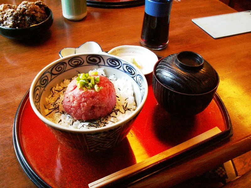 の予定が、おいらは昨晩のメシに鮪丼を食べていたので、まぐろの揚げ物のどんぶりものを注文!