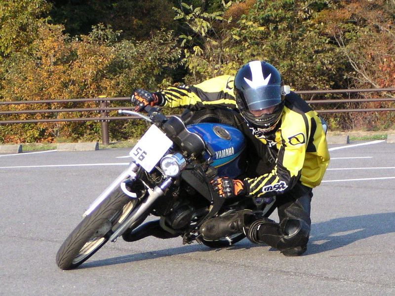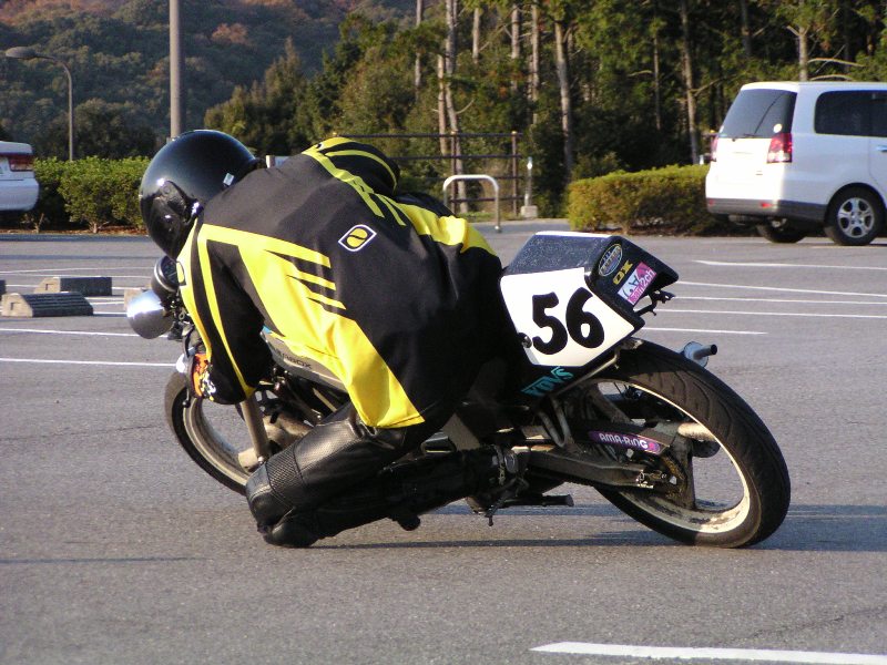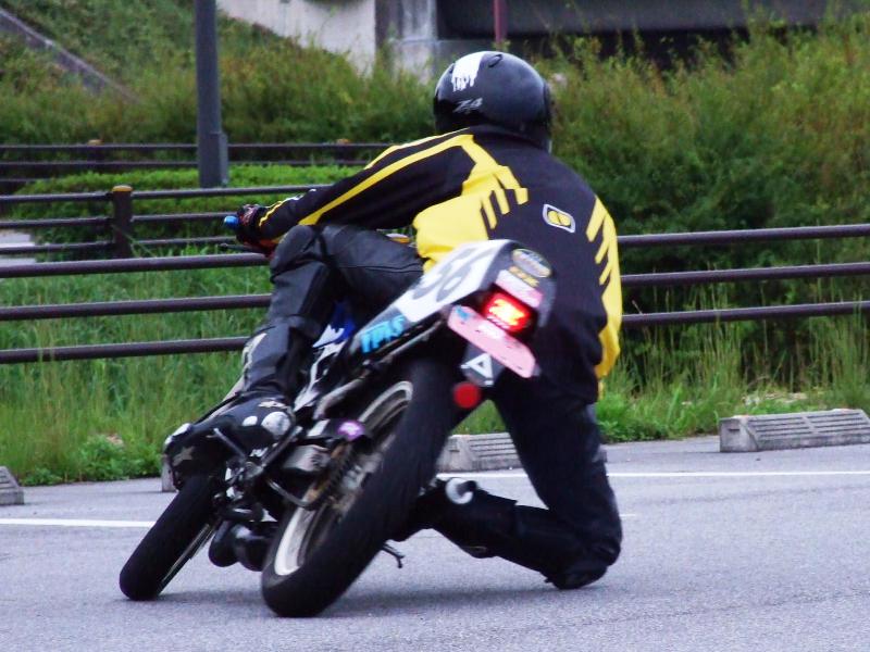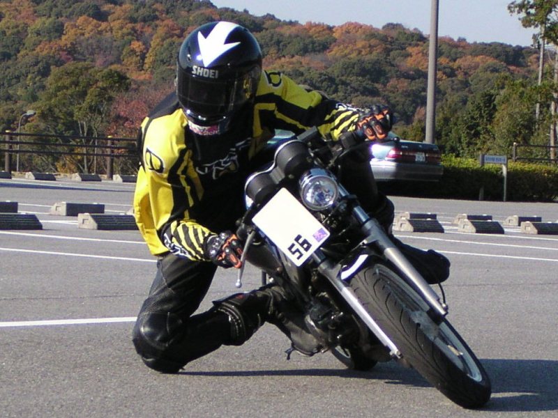 無理膝ってほど無理してませんよー。バイクのセッティングのせいなのか、コレ以上いくらスピード上げても寝なかったんで。それだけです。