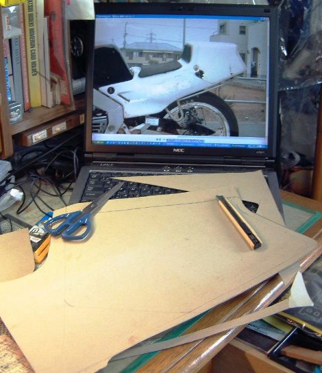 まず,厚紙を.型に.鉛筆でカウルをなぞってきたものを,切って