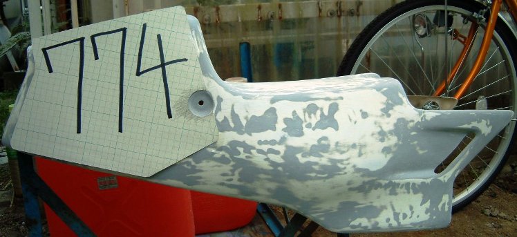 さて,今日はシングルシートカウルに貼るゼッケンのベースとかを作りました.