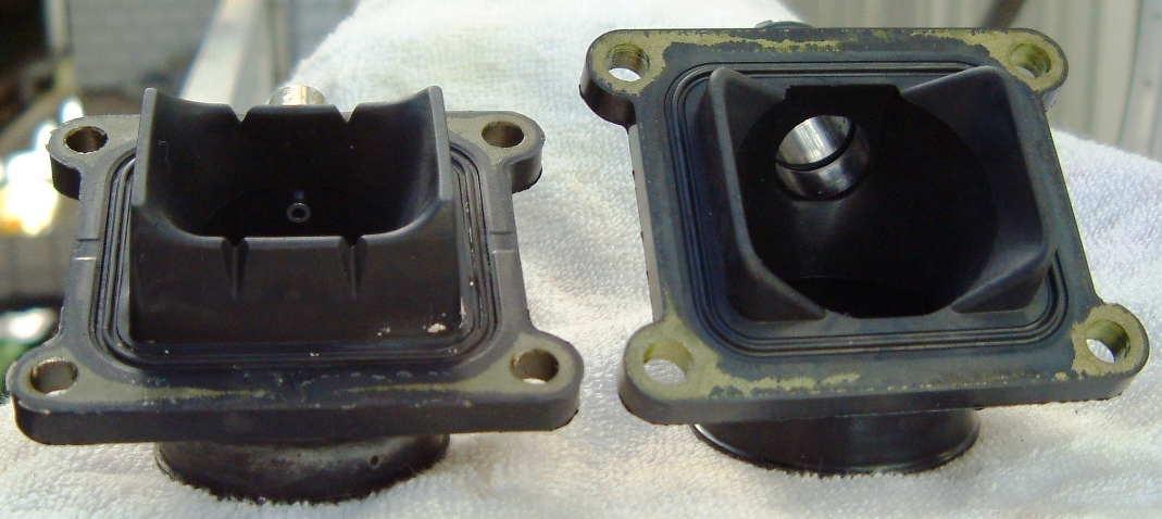 右がSDRのモノ.左がTZR125のもの.ヤフオクで落としたSDRのリードバルブは,ボイセンかな?2枚重ねの樹脂バルブがついてました.若干やれてますが,シッカリ閉じてて,戻りも◎